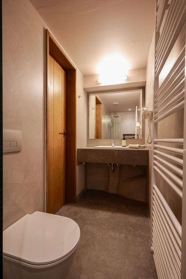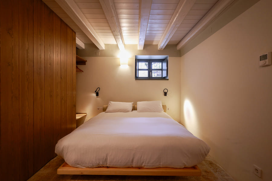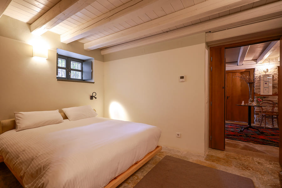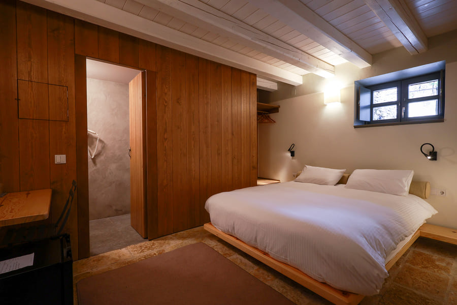 Διαθέτει ένα διπλό κρεβάτι με λευκά είδη υψηλής ποιότητας, μικρό ξύλινο γραφείο και μια μοντέρνα ξύλινη καρέκλα κατασκευασμένη από ανακυκλώμενα υλικά, ανοικτή ντουλάπα, μίνι μπαρ, Wi-Fi και κλιματισμό. Σύγχρονο ντουζ με πολυτελή προϊόντα περιποίησης σώματος, πλήρως βιοδιασπώμενα.
